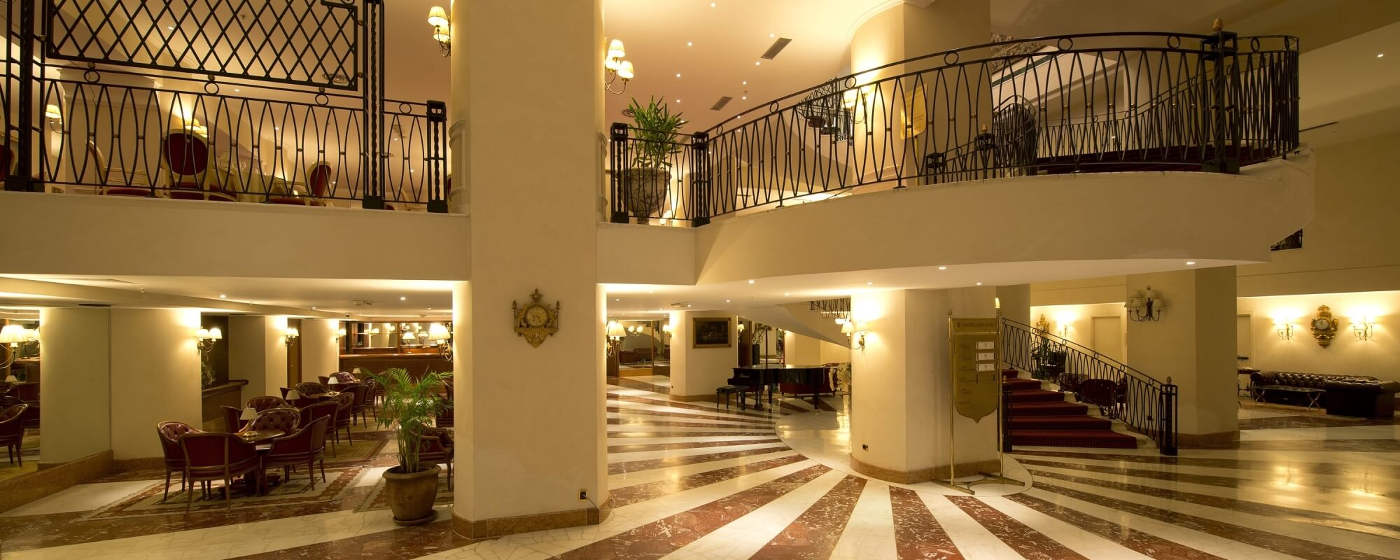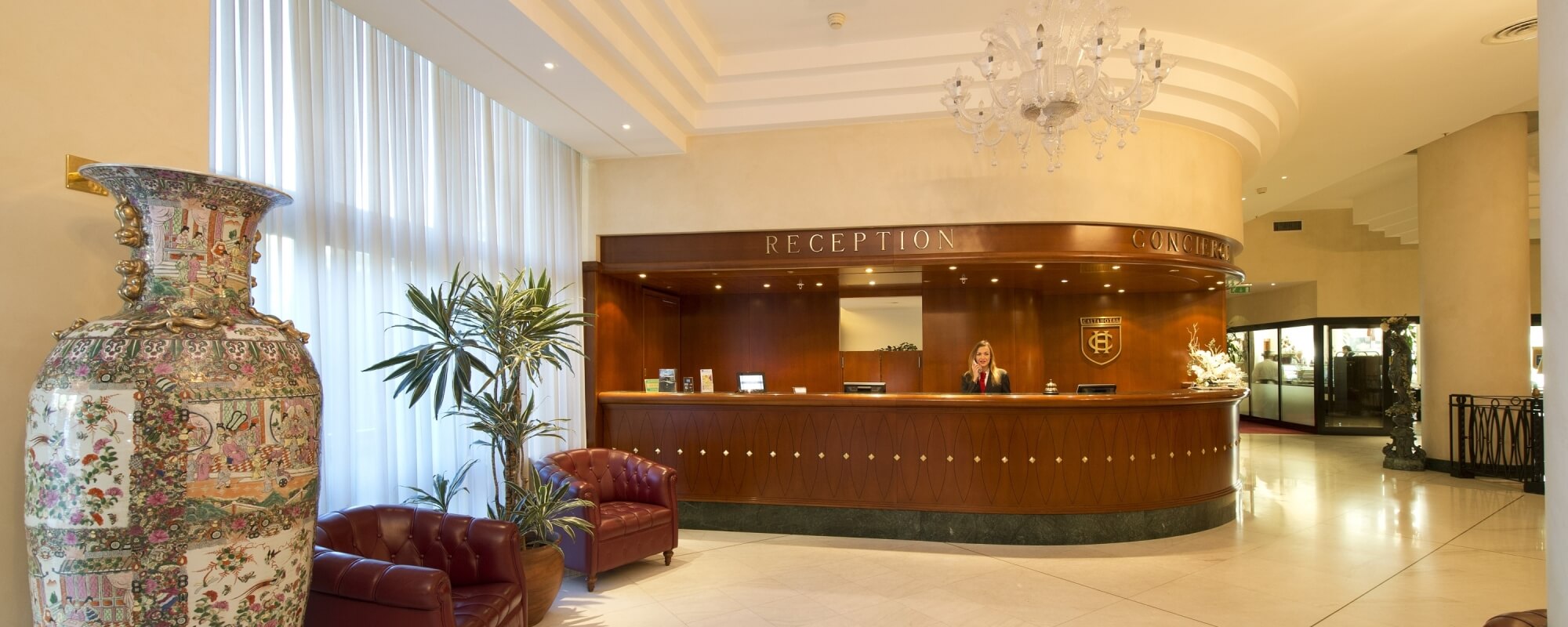 In contrast with the exterior architecture, the hall shall welcome you with elegant furnishings, precious Murano chandeliers, fine oriental carpets and rare Chinese vases, a delight for your eyes that will be captured.